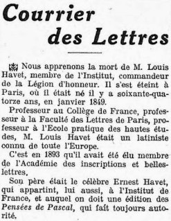 Dès 1887 Louis Havet s’engage sur un difficile projet, la simplification de l’orthographe. En 1889, année de la Tour Eiffel et du tramway de Vouvray, il présente à l’Académie Française une pétition ayant recueilli 6500 signatures dont 50 membres des différentes académies, 289 noms de l’enseignement supérieur, 1800 professeurs de l’enseignement secondaire, 3000 membres de l’enseignement primaire ainsi que des hommes de lettre, des archivistes, des bibliothécaires et plus de 500 signatures de professeurs suisses, belges, anglais, allemands, espagnols, suédois.