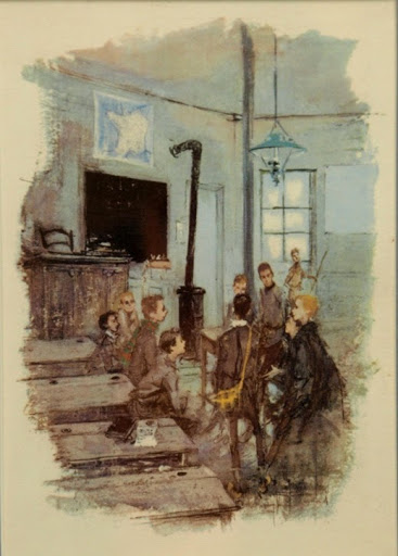 | Classe d’école à Rochecorbon en 1922 (peint par MmeLandry, fille de l’instituteur de l’époque) |