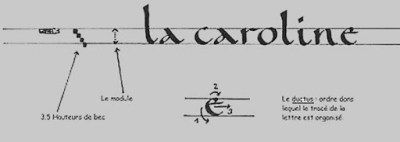 | Caractères d’écriture « la caroline » définis par Alcuin. |
