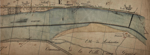 Extrait du cadastre napoléonien (1819) on y voit, sur la rive droite de la Loire,  les ports Grados, Marchandeau, Allaire…