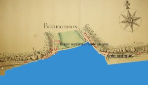 C’est probablement là qu’il faut situer le « Portus Rupium »,  « le port des Roches » des textes anciens. Il n’y a pas entre Amboise et Tours d’autres emplacements correspondant mieux à cette appellation! Un document de l’Ecole des Chartes donne quelques informations supplémentaires « le mot Portus a une double signification, il désigne aussi un lieu où une route antique, presque toujours une ancienne voie romaine traversait un fleuve ou une rivière » le même document donne parmi ses exemples; Roche-Corbon, Portus Rupium..