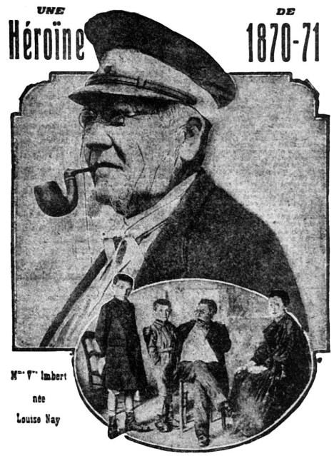 A cette époque, Louise Nay habite Metz. Elle est connu sous le nom de la veuve Imbert. Lors de l’arrivée des troupes prussiennes elle constate que l’ennemi construit un pont de bateaux pour franchir a Moselle. Elle court en informer les autorités françaises. Elle se prend au jeu et rapidement fait office d’estafette volontaire, transportant des ordres militaires entre les différentes troupes. Déguisée en homme elle s’infiltre dans les lignes prussiennes. Arrêtée, elle réussit à se sauver en tant préservé les 3 messages qu’elle portait. Son grand fait de guerre a été d’espionner le positionnement des troupes prussiennes autour de la commune de Sierck, au nord de Thionville.