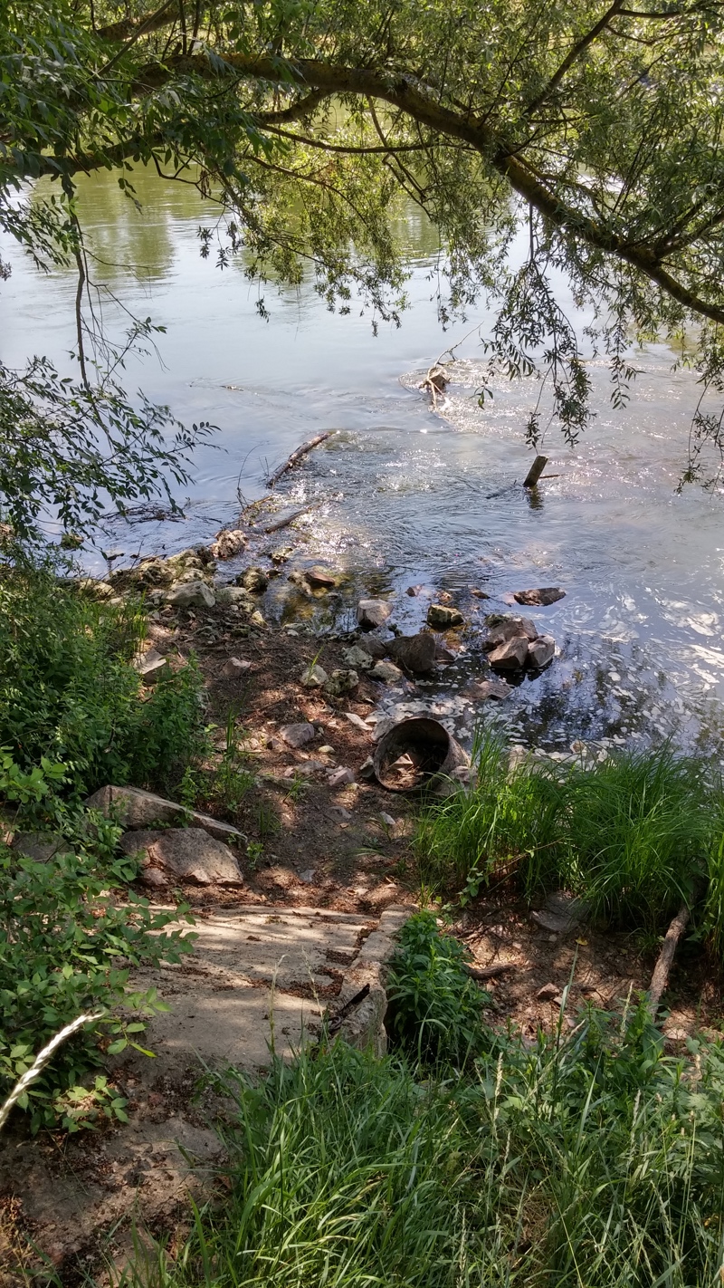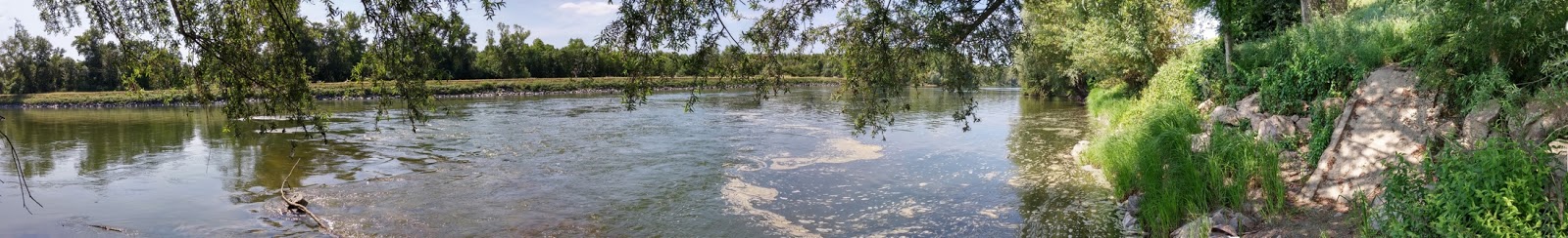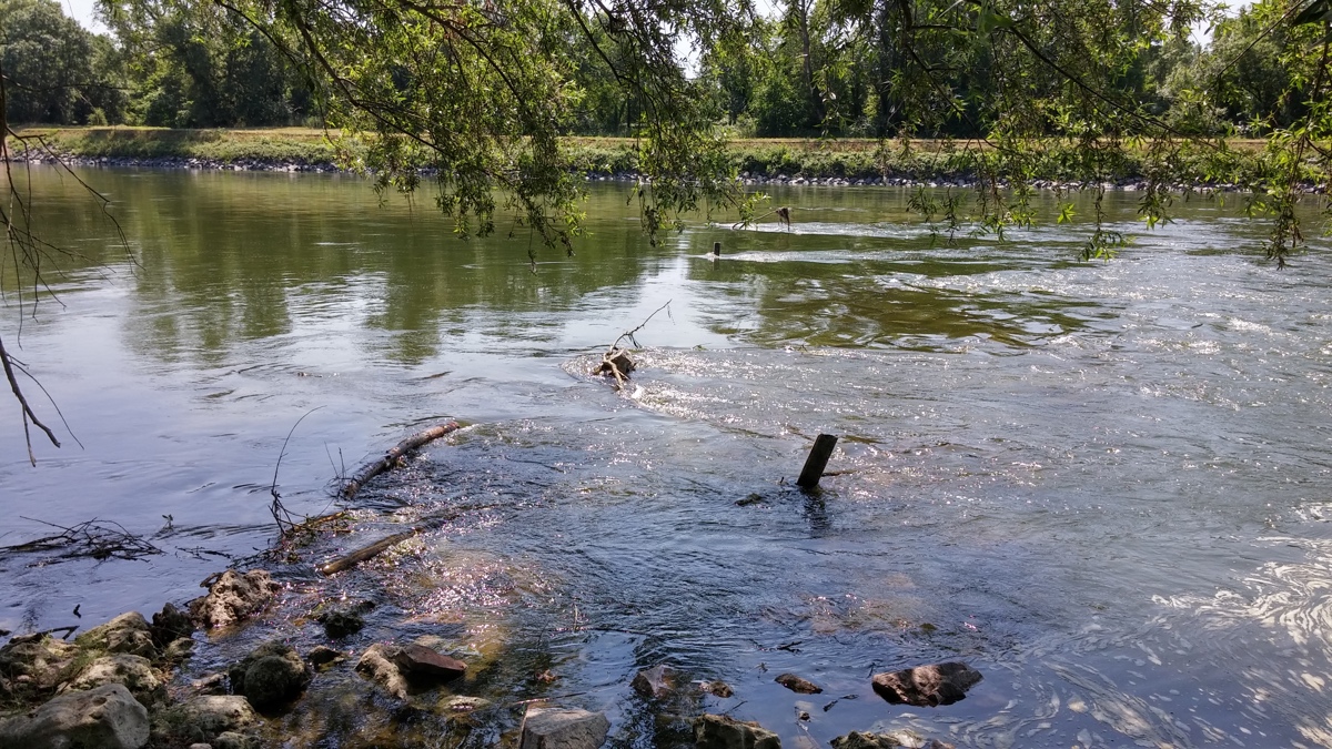 Si on l’imagine horizontale, pourrait-il alors s’agir du début d’une passerelle traversant ce bras de Loire ? En se retournant dos à la plaque on voit ceci :