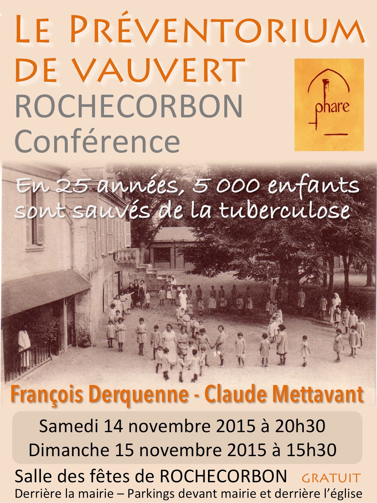 La conférence sera animée par Claude Mettavant, président du Phare, auquel se joindra tout à fait exceptionnellement le docteur François Derquenne : sa mère a travaillé au Préventorium, elle lui en a longuement raconté l’histoire et transmis quelques documents et photographies rares. Il pourra ainsi nous raconté la vie du Préventorium « vue de l’intérieur » !